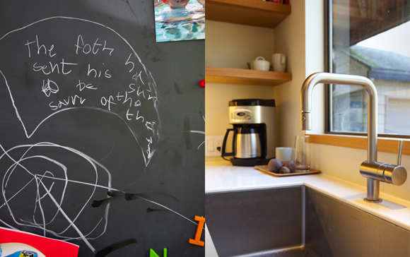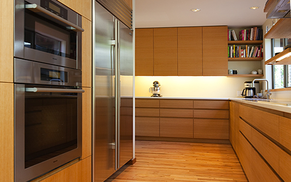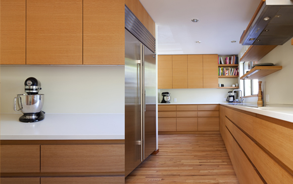 A loving husband's Christmas gift for a deserving wife and family, this major kitchen overhaul created a more spacious feel with open shelving and streamline cabinetry. Additional work included drywall repairs to common areas requiring a maze of scaffolding to access the 28 foot high vaulted ceilings. Demolition started a few days after Thanksgiving. With hard work and dedication, the whole team pitched in to help make spending the holidays at home a new experience for