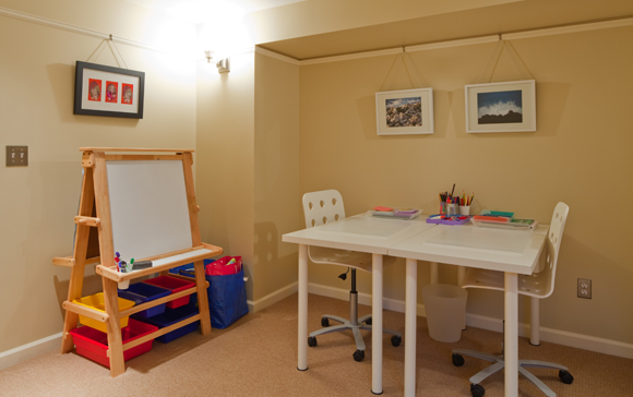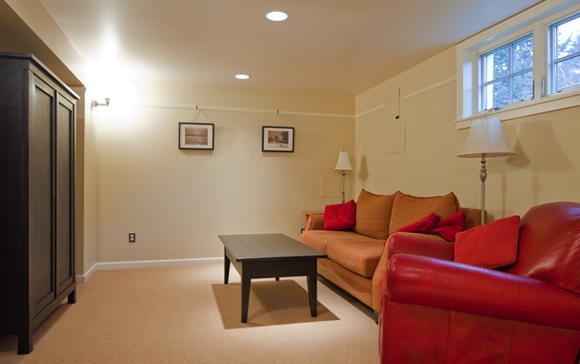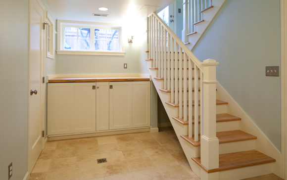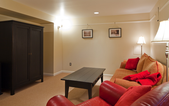 Complete basement conversion to living space including a new bathroom, bedroom, family living, and concealed laundry areas, new concrete floors with integrated passive radon mitigation system, interior concrete wall waterproofing, new egress window, upgraded structural post and beam framing, low VOC products and FSC certified framing and